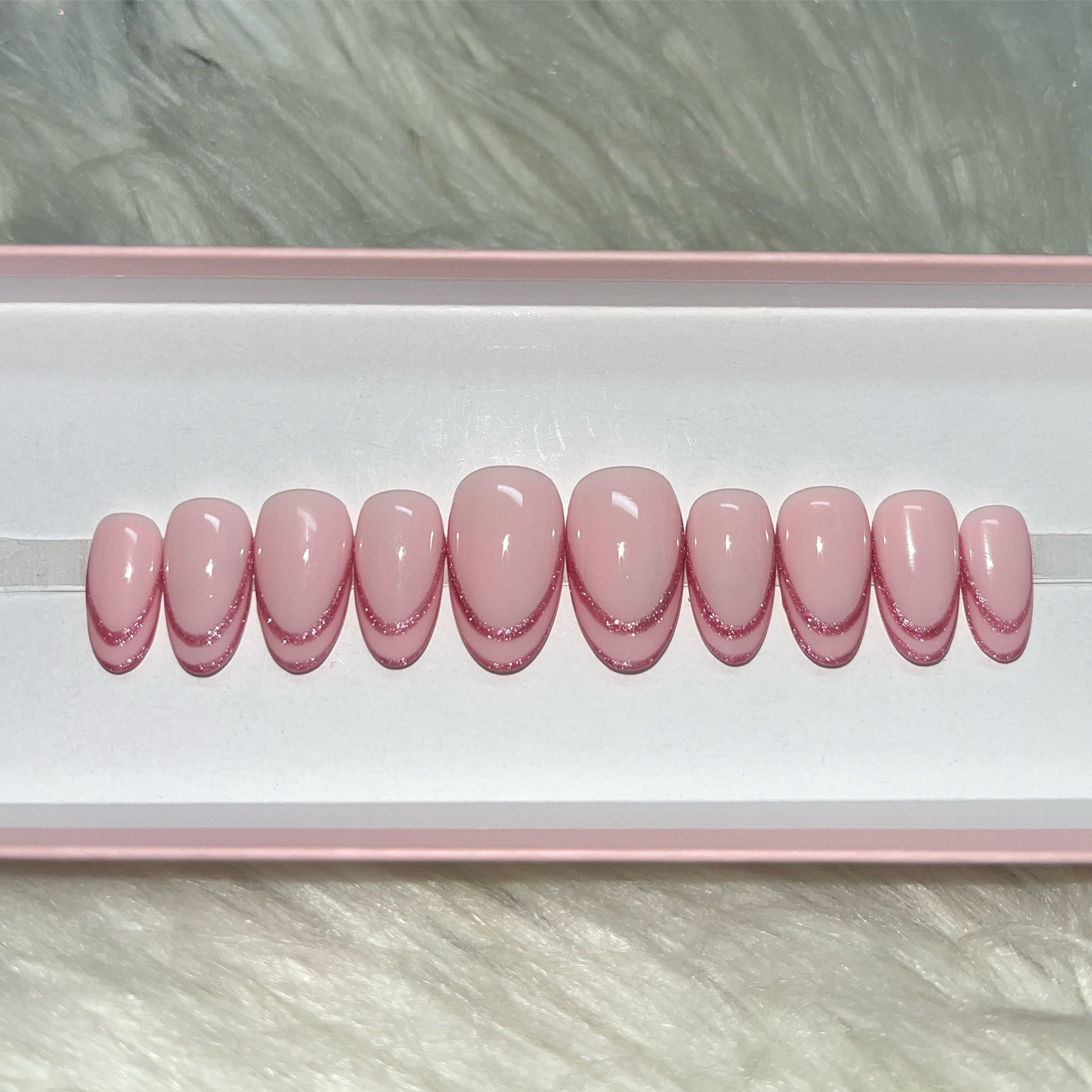 ALT Text: pink glitter french tips
