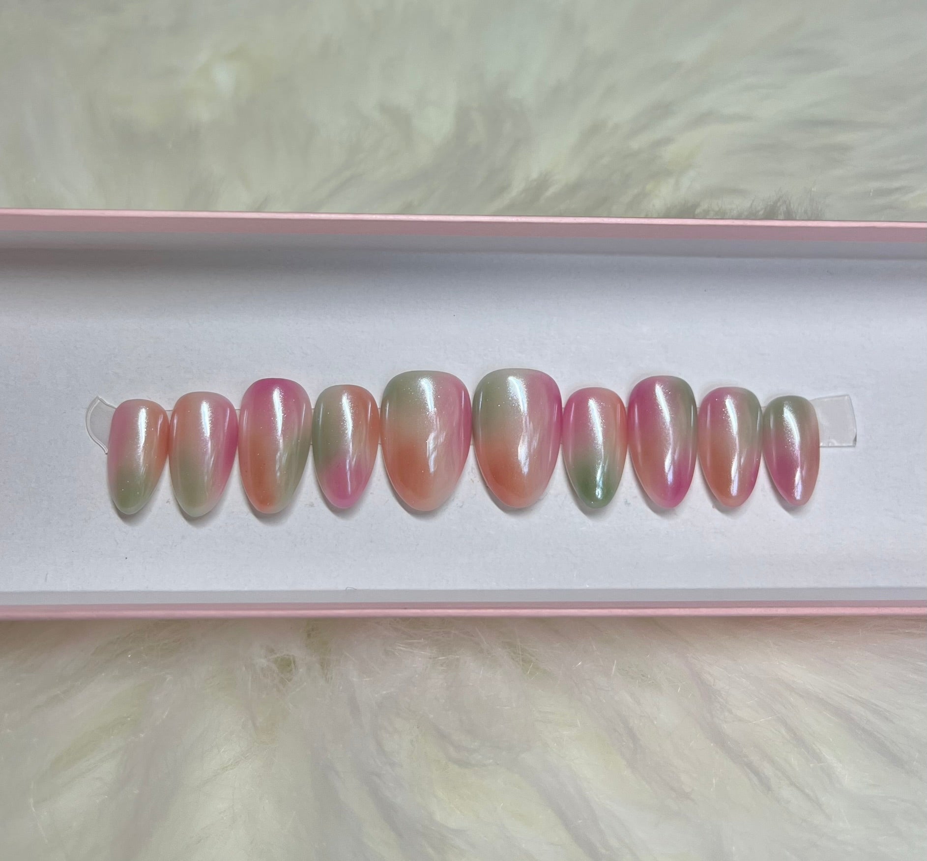 My nail tips are formulated out of soft gel to provide you with a comfortable and lightweight nail enhancement. All press ons are made with gel nail polish. My press ons may last for about 1-2 weeks if properly adhered, properly removed and taken care of properly.