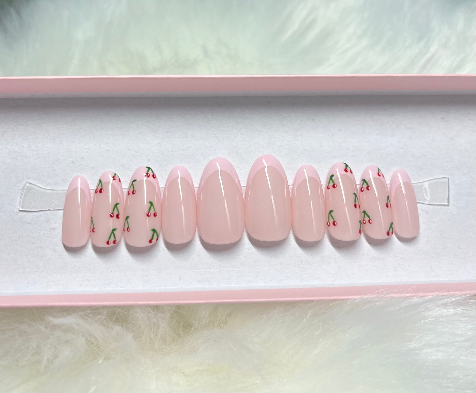 ALT Text: pastel light baby pink french tips cherries fruit spring
