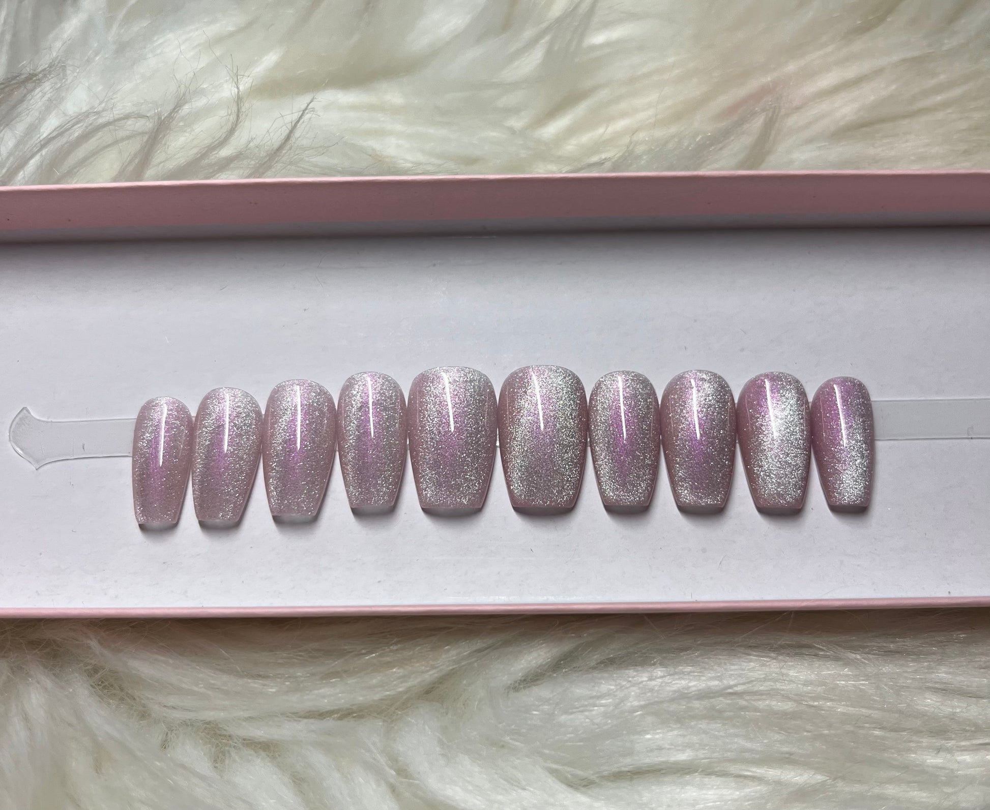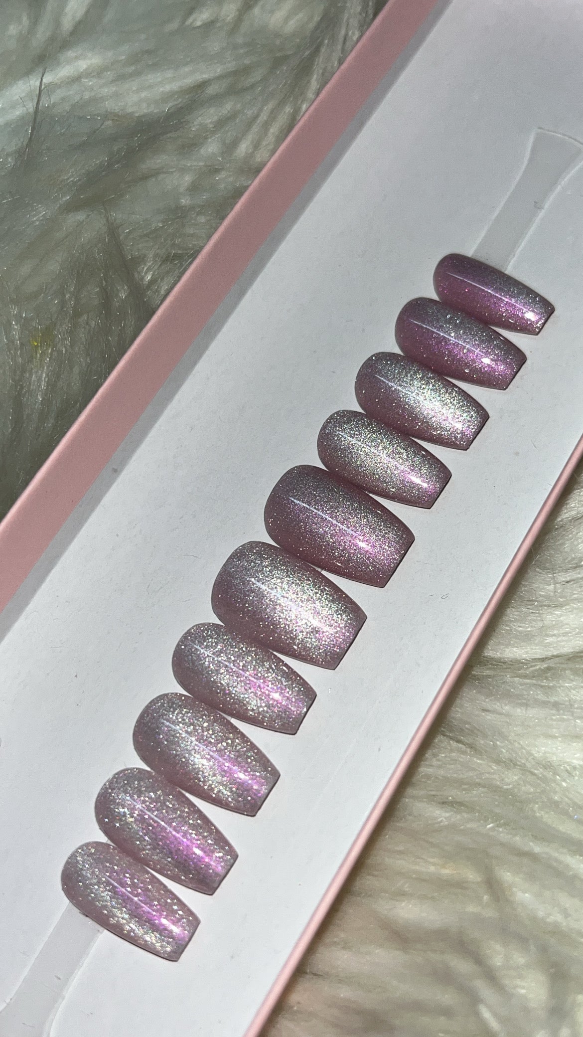 ALT Text: purple silver cat eye velvet magnetic glitter