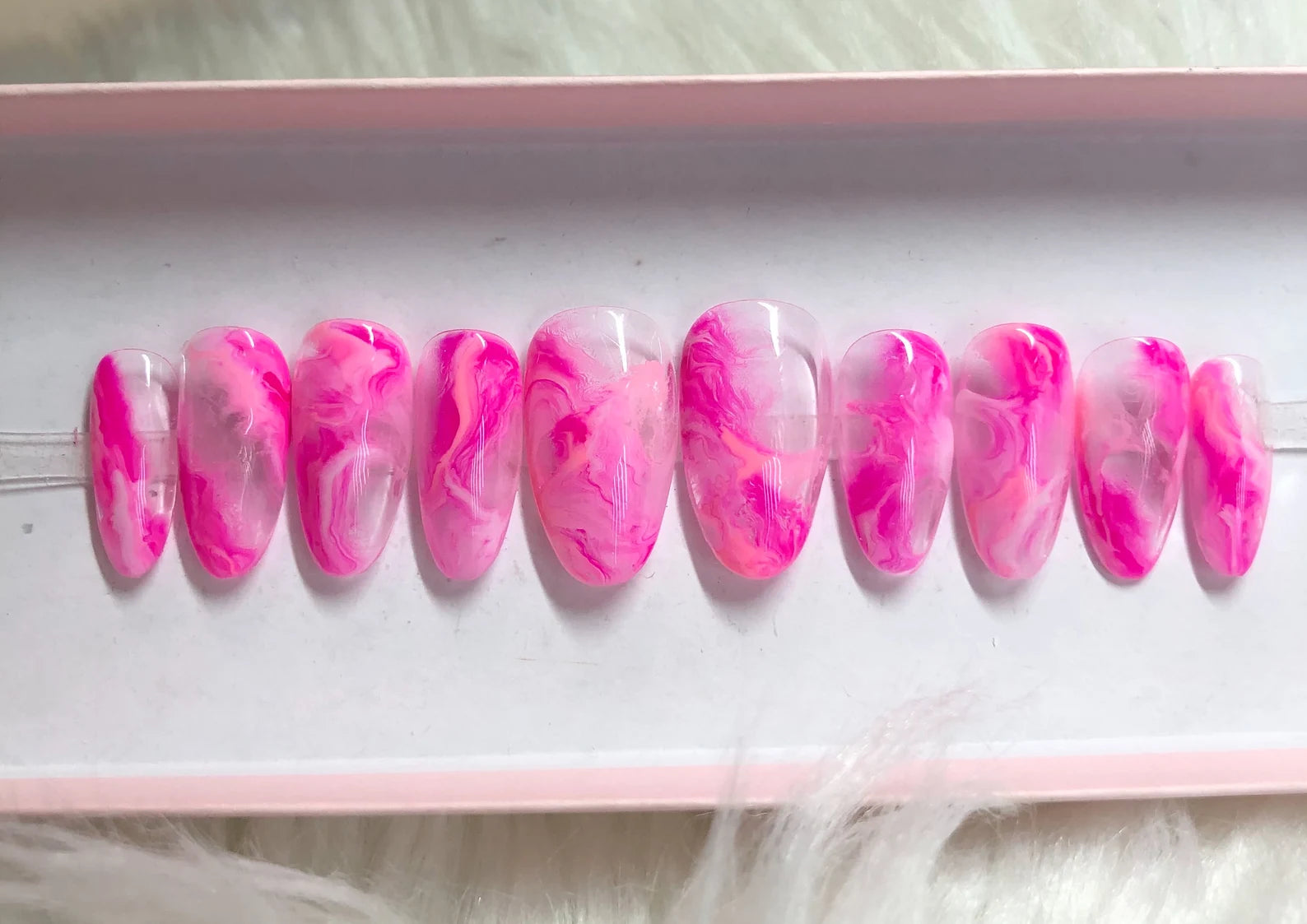 My nail tips are formulated out of soft gel to provide you with a comfortable and lightweight nail enhancement. All press ons are made with gel nail polish. My press ons may last for about 1-2 weeks if properly adhered, properly removed and taken care of properly.