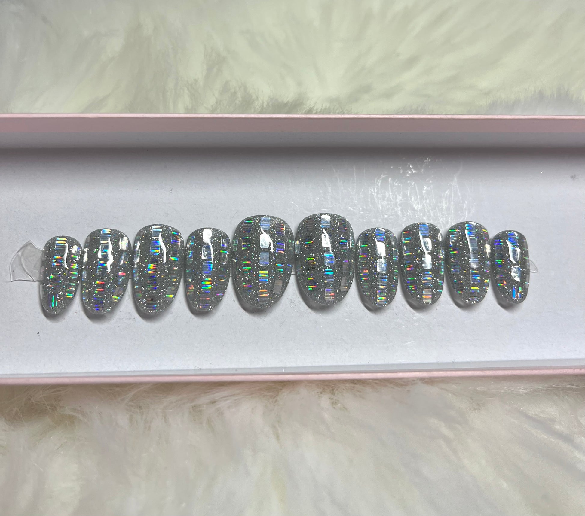 ALT Text: disco ball nye silver glitter holographic holidays christmas new years eve