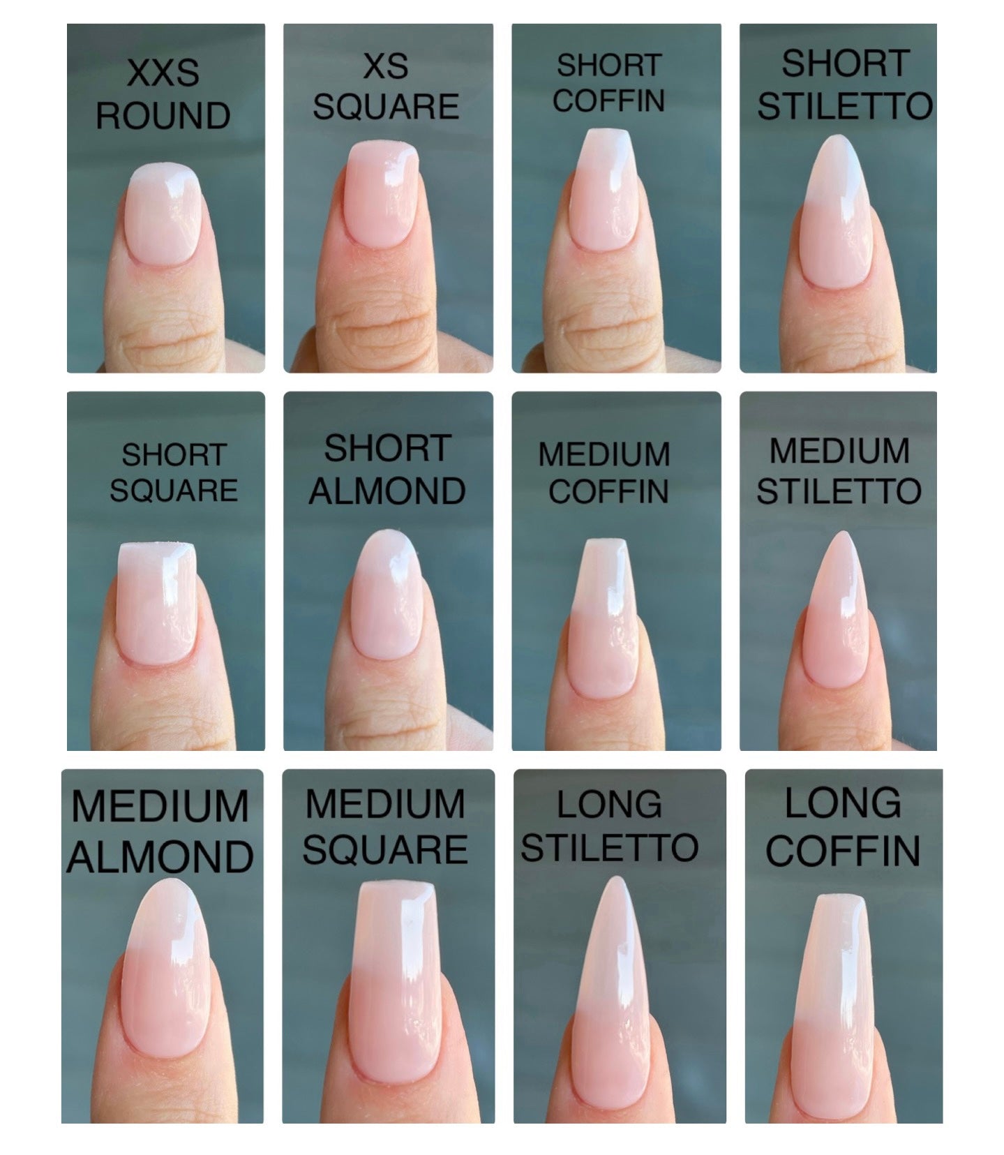 The shape shown in the photo is "Short Almond". If "Custom" sizing has been chosen, please leave your sizes in the note to seller section before checking out.