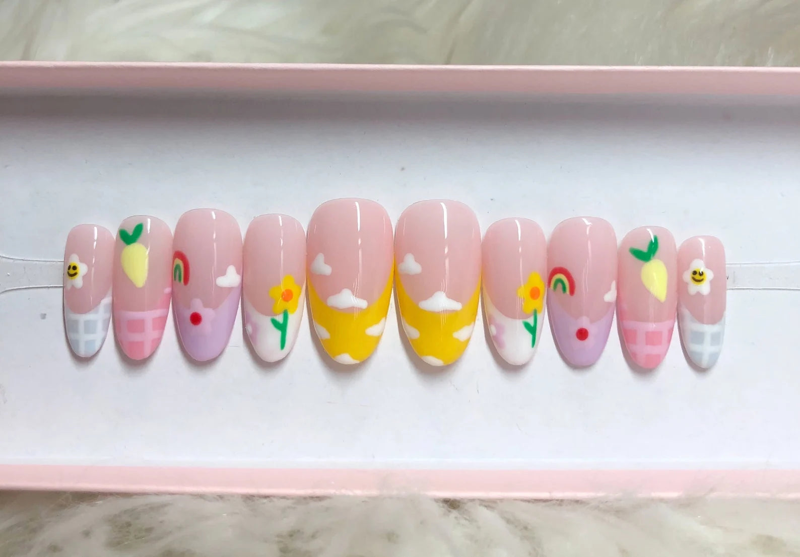My nail tips are formulated out of soft gel to provide you with a comfortable and lightweight nail enhancement. All press ons are made with gel nail polish. My press ons may last for about 1-2 weeks if properly adhered, properly removed and taken care of properly.
