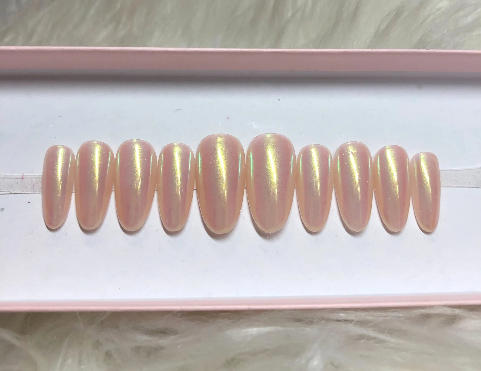 Experience the same stunning style that Whitney Simmons embraced with our "Glazed Donut" set. As seen on the fabulous influencer herself, these nails combine the elegance of a nude palette with a captivating chrome finish, creating a mesmerizing and sophisticated look that will elevate your manicure to new heights.