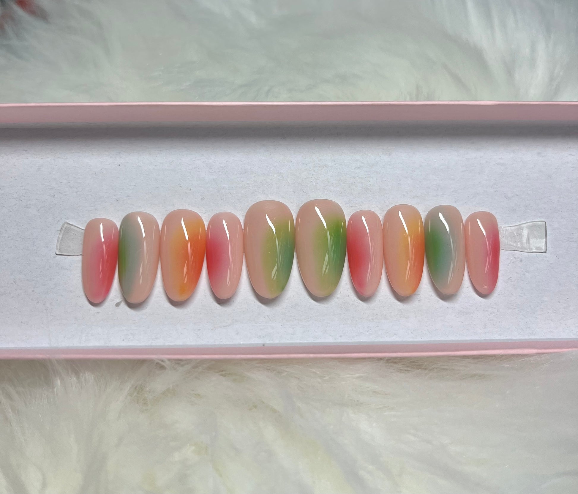 My nail tips are formulated out of soft gel to provide you with a comfortable and lightweight nail enhancement. All press ons are made with gel nail polish. My press ons may last for about 1-2 weeks if properly adhered, properly removed and taken care of properly.