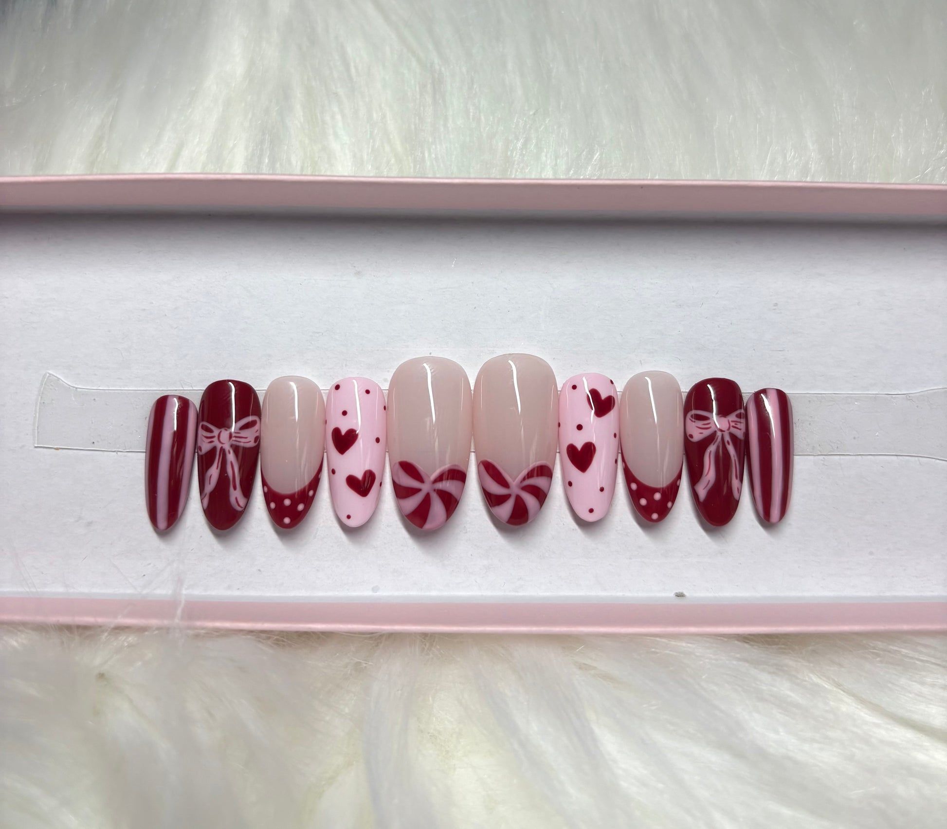 ALT Text: bow valentines day pink red stripes heart
