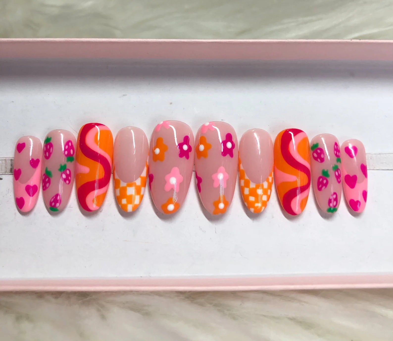 🔴 please make sure your sizing is correct. These nails are hand-painted just for you and unfortunately, we do not give refunds for inaccurate measurements.