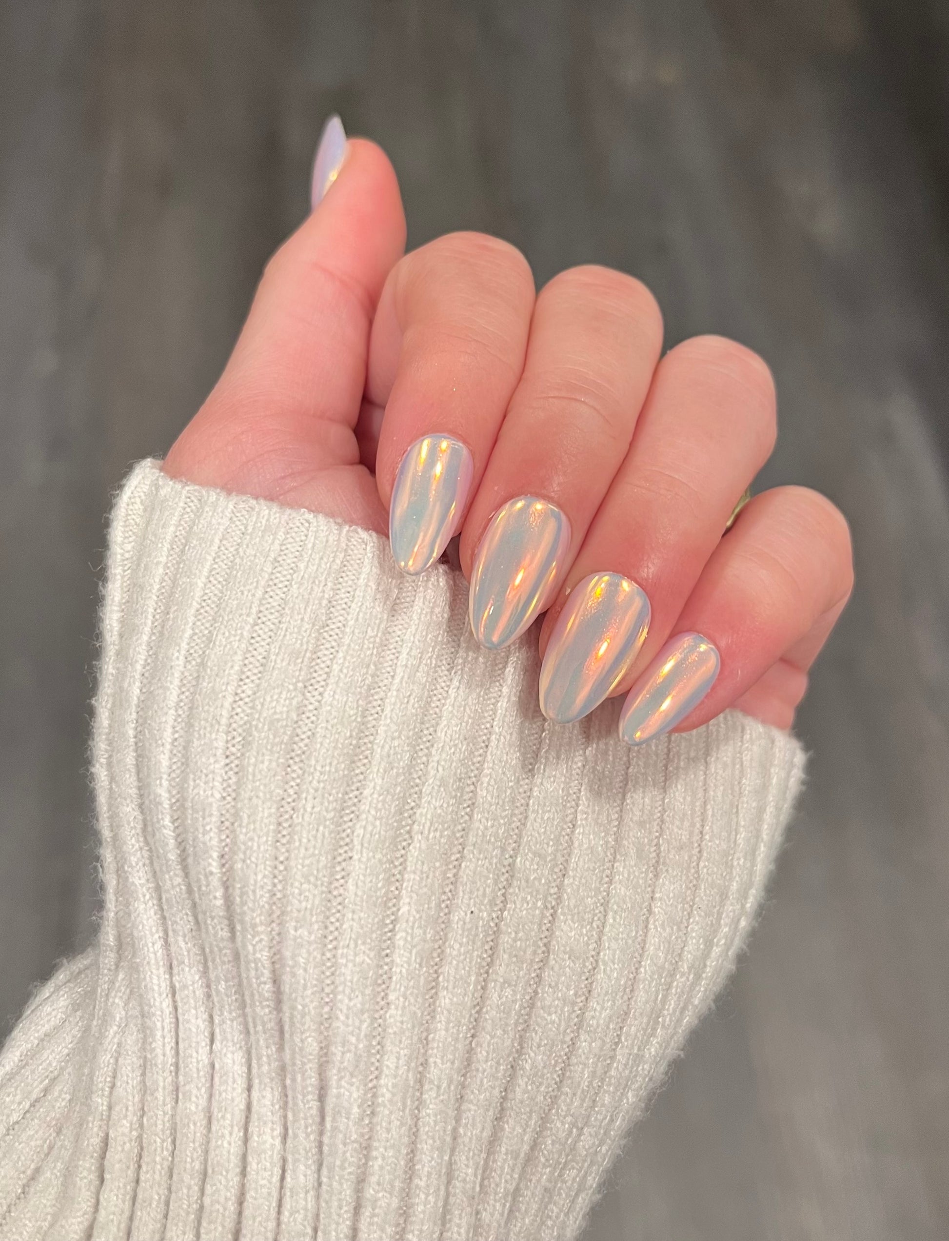 ALT Text: blue gold chrome rainbow