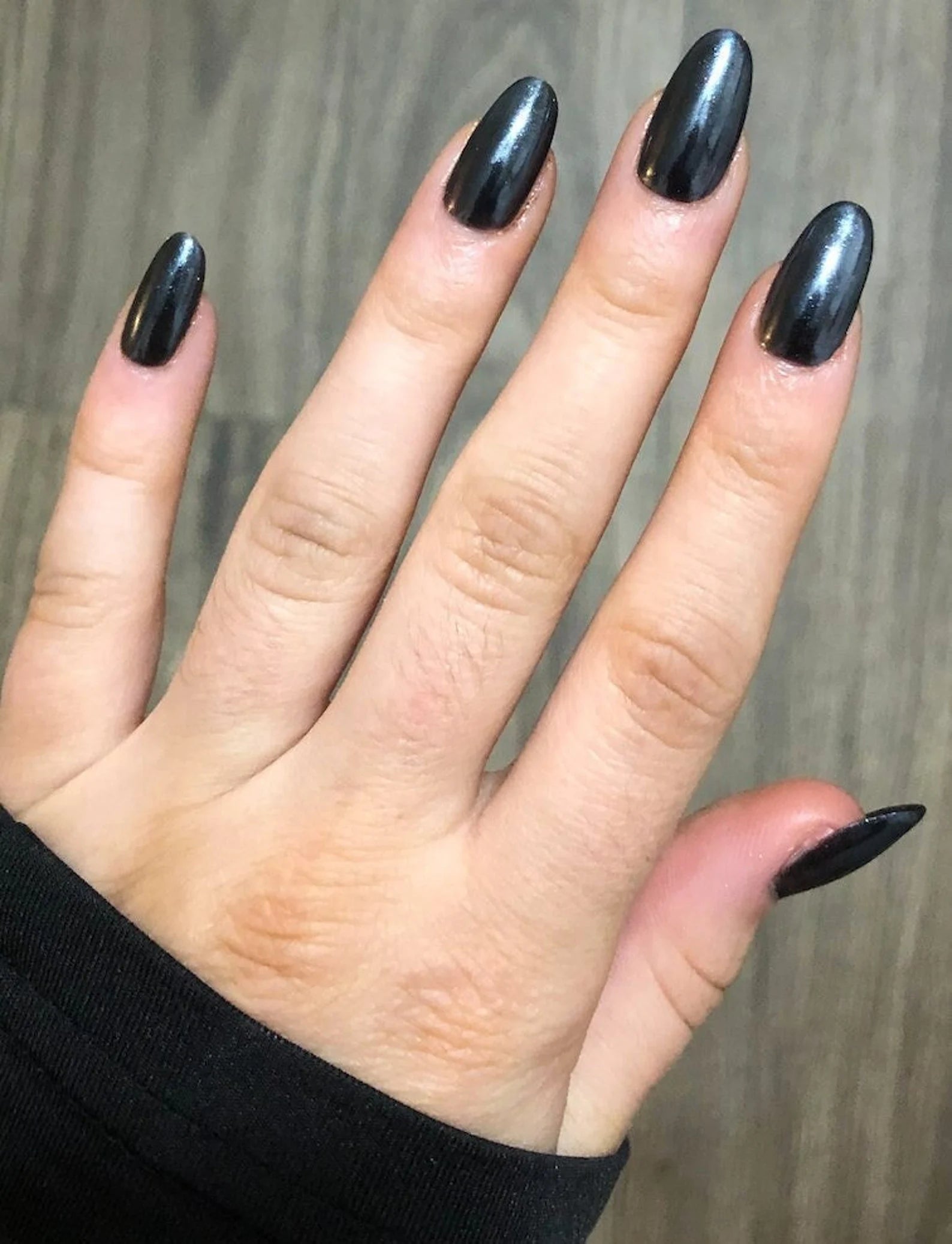 ALT Text: black hailey bieber chrome glazed donut