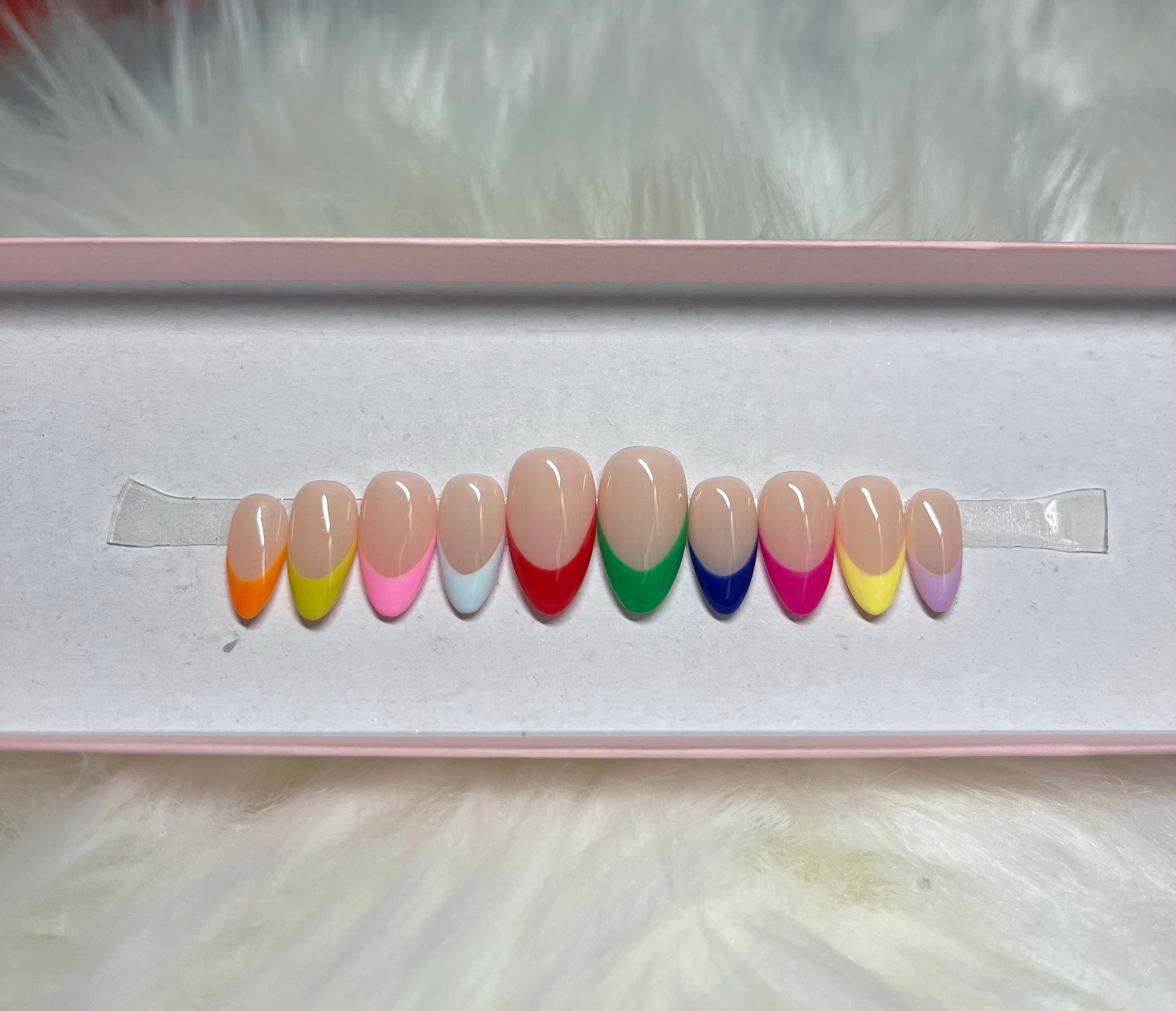 ALT Text: rainbow neon bright vibrant french tips colorful