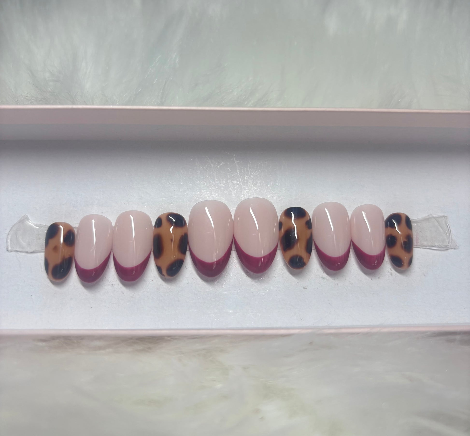 ALT Text: burgundy cherry dark red fall tortoise shell cheetah french tips
